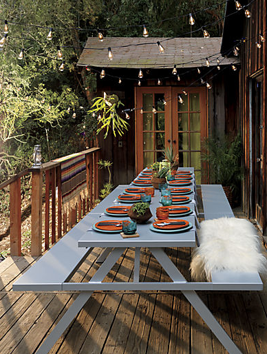 lights string patio backyard outdoor summer lighting dining flowers garden industrial living guests plates dinner fresh pop fresco al pergola